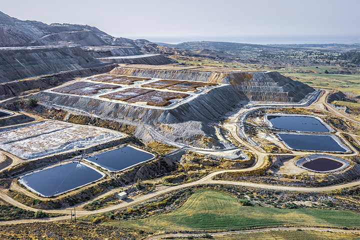 A solução enriquecida é então coletada por poços de recuperação e encaminhada para as etapas subsequentes de processamento metalúrgico.