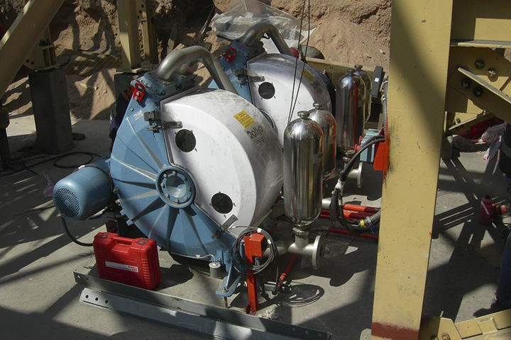 Em contrapartida, as vazões envolvidas são classificadas como médias a altas, em função dos grandes volumes de solução lixiviante necessários para garantir a irrigação contínua e uniforme das pilhas de minério. Essas condições operacionais são prontamente atendidas pelas soluções de bombeamento peristáltico da Vallair, com destaque para os modelos MS (com vazão de até 25 m3/h a esquerda) e DR (com vazão de até 180 m3/h à direita), ilustradas a seguir: