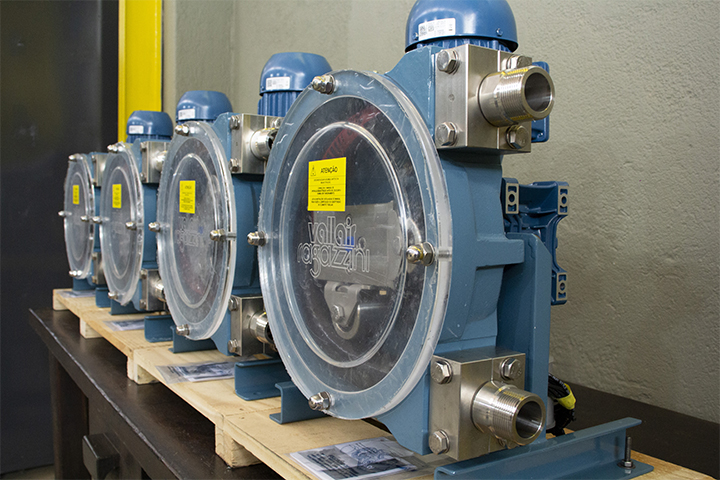 Essas condições são adequadamente atendidas pelas soluções de bombeamento peristáltico da Vallair, com destaque para as linhas PSF (com vazão de até 2,7 m3/h [2700 L/h]) ilustrada a seguir e MS já apresentada anteriormente.